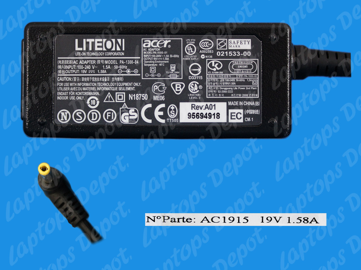 19V-1.58A, 30w, 5.5*1.7mm No incluye cable de corriente.